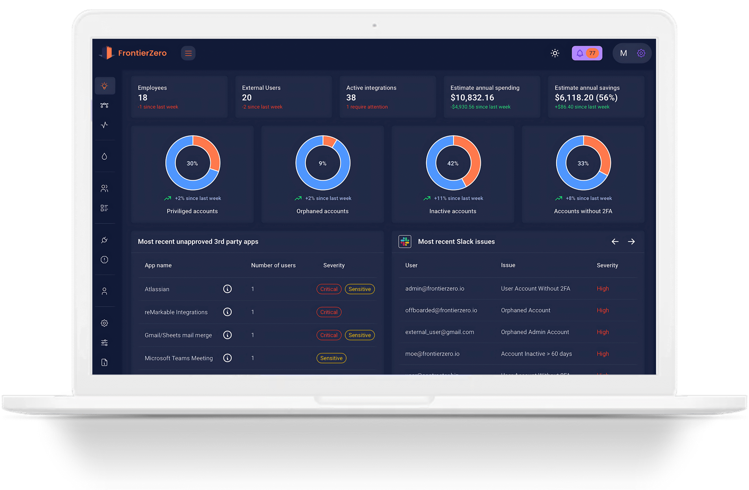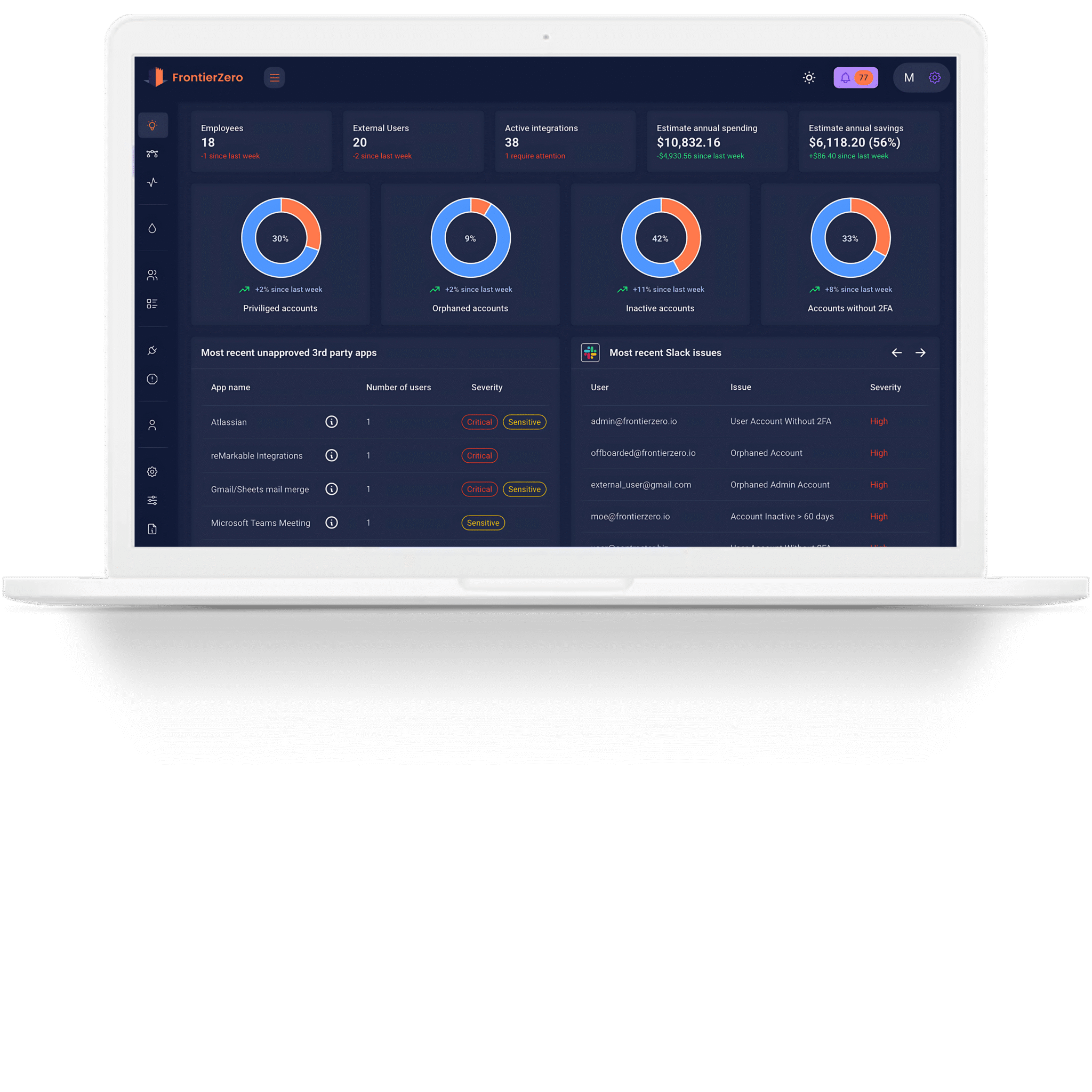 FrontierZero gives you real-time visibility into identity risks, vendor integrations, shadow IT, compliance, and SaaS costs — all in one platform.
